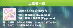 イクノさんはライブで発表された新曲Comeback Story Vの歌唱メンバーにも入ってますわ!
