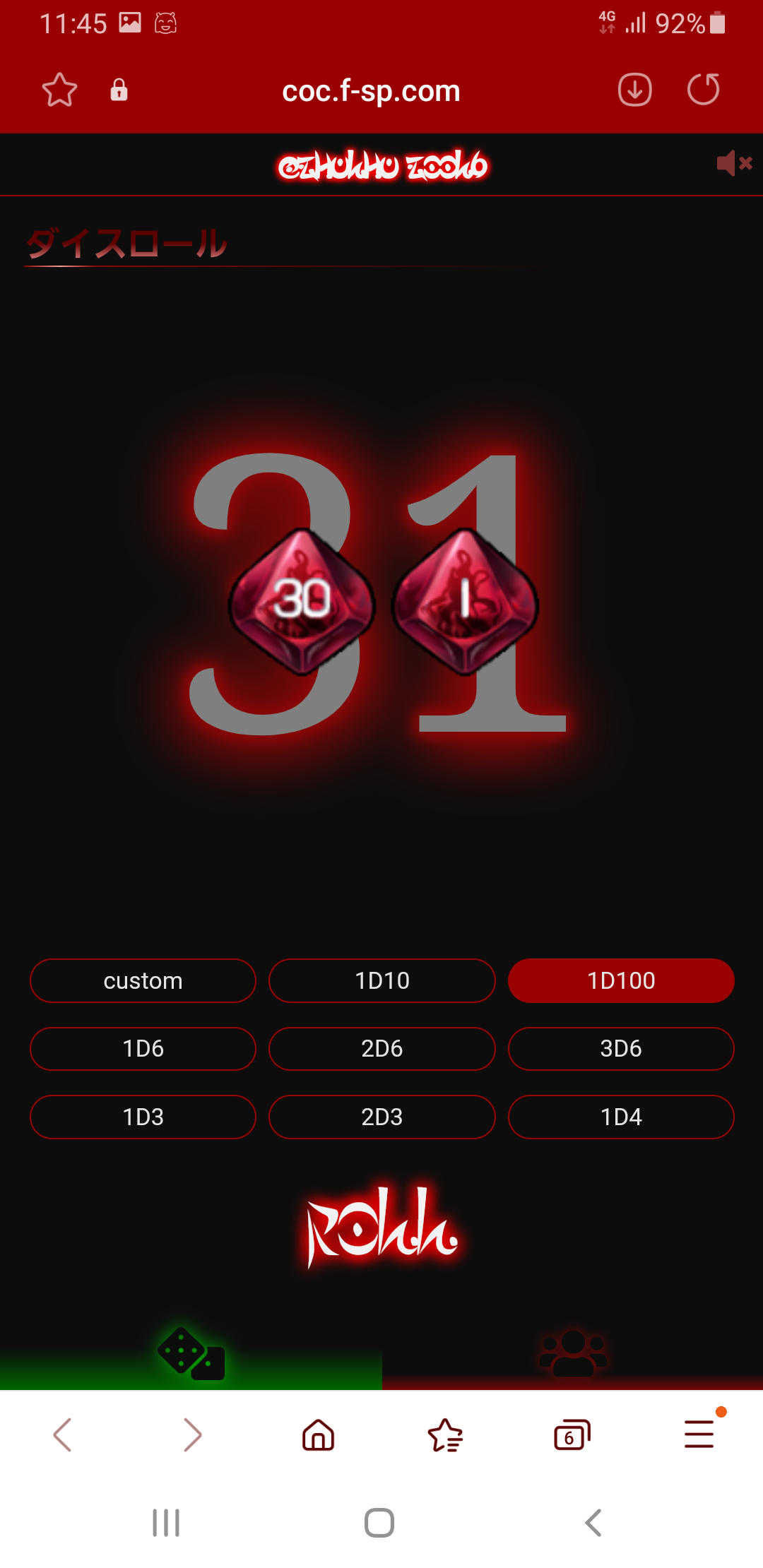 (使ってたサイトが1D100までだったのでサイト変更してます)