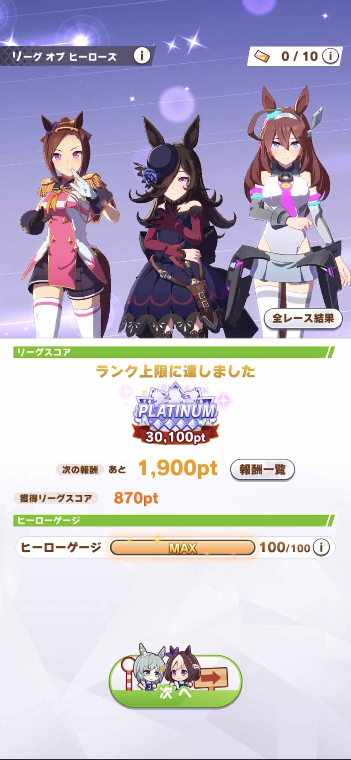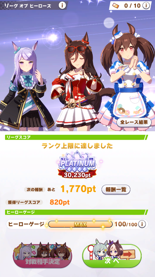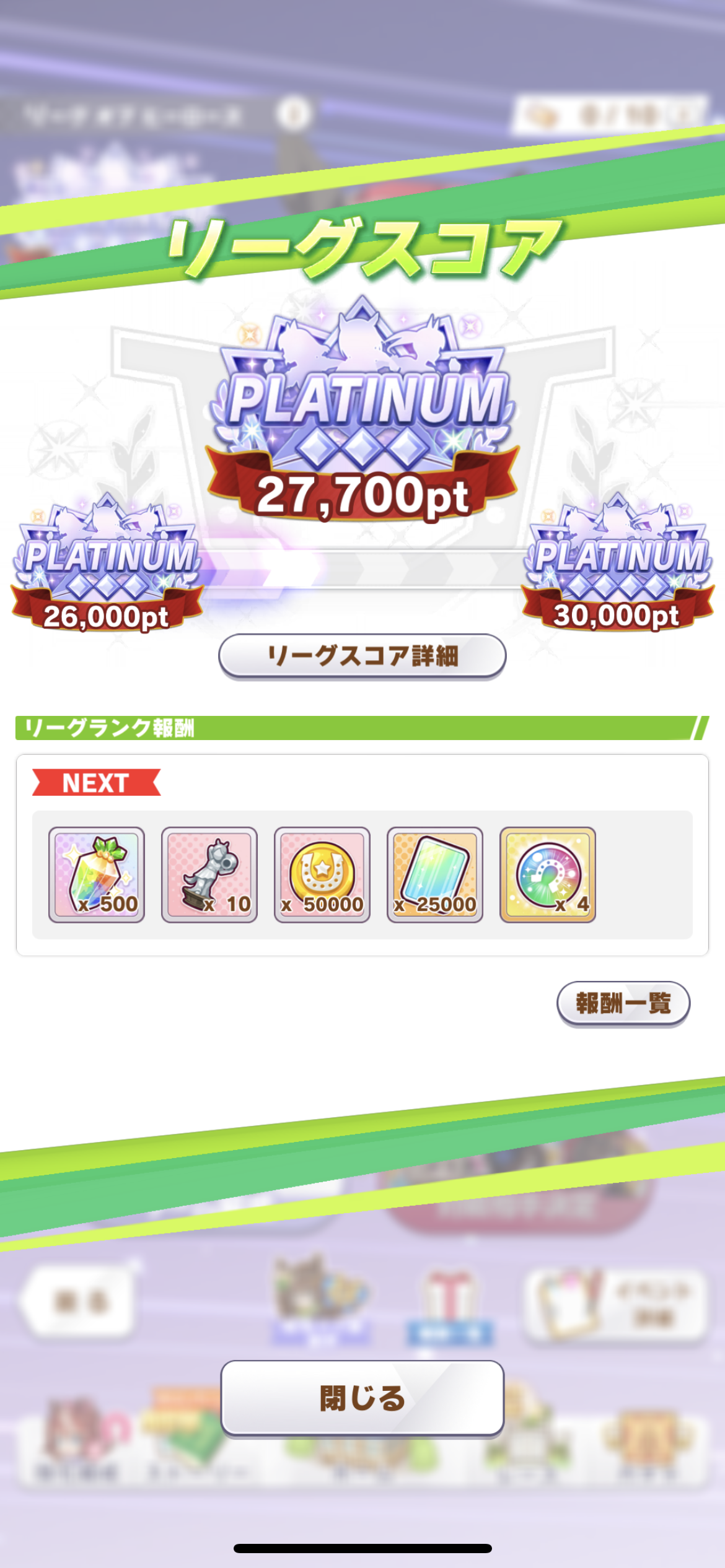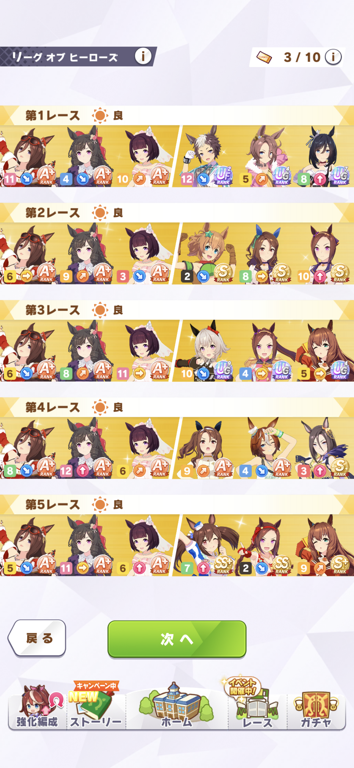 今回先行に積みたいのはつぼみ(3〜5位)、ヴィクショ(3〜5位)、鍔迫り合い(1〜6位)だから3〜5位のポジションをキープしたい