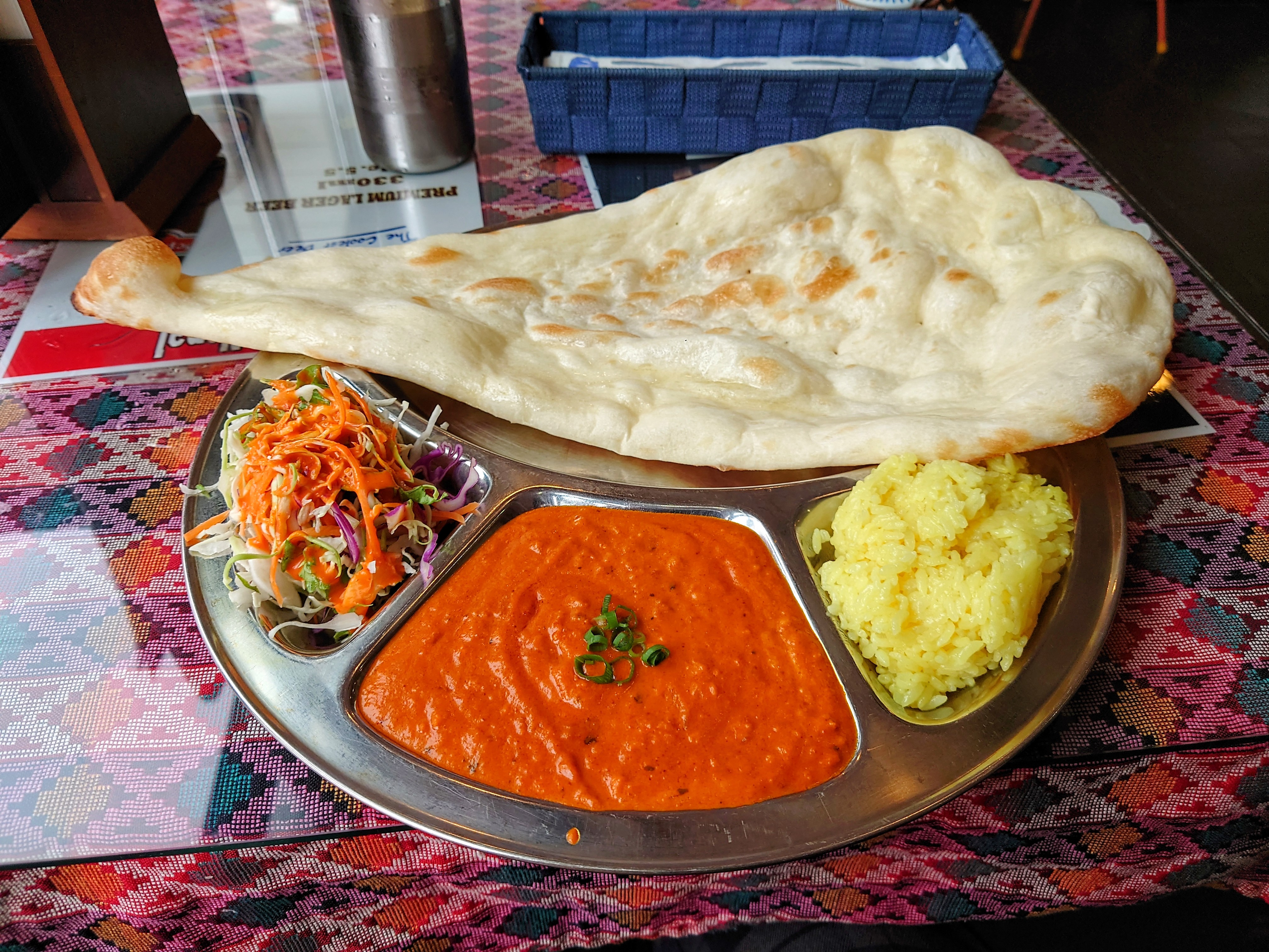 「ナン オカワリデキルヨ タベナイノ?」って聞かれるけど一枚で十分腹いっぱいになるんだよな