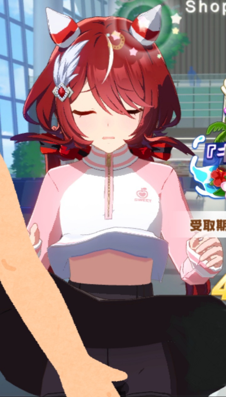 当日は胸と尻のトナカイ衣装で、トレセン学園内を四つん這いソリを引いてまわり、生徒や教員からプレゼントを渡してそのお礼に尻を叩いて貰ったり白因子やおしっこをかけてもらう