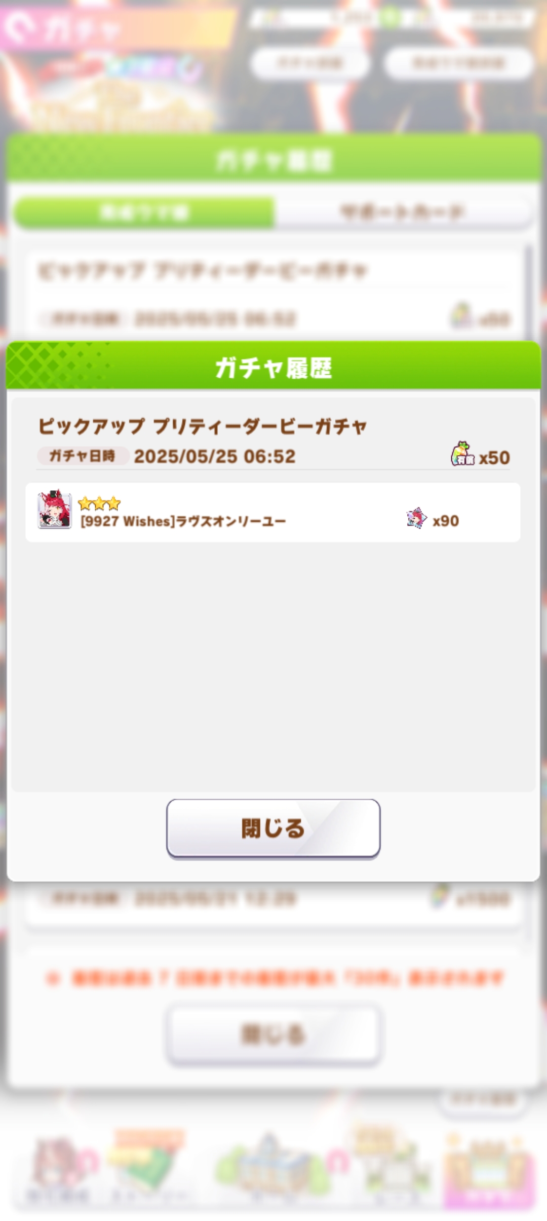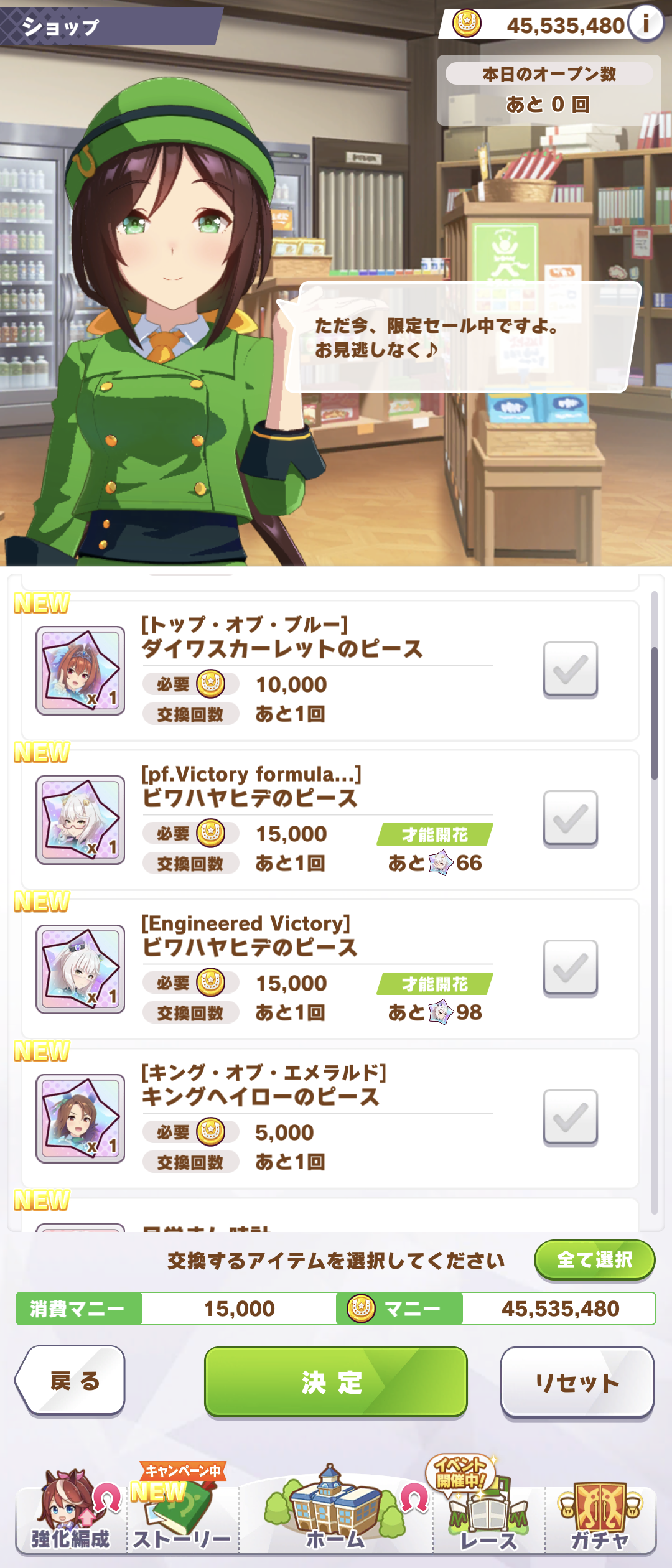 新衣装のマルゼンが来るかも分からないのでジュエルを温存しとくのだ