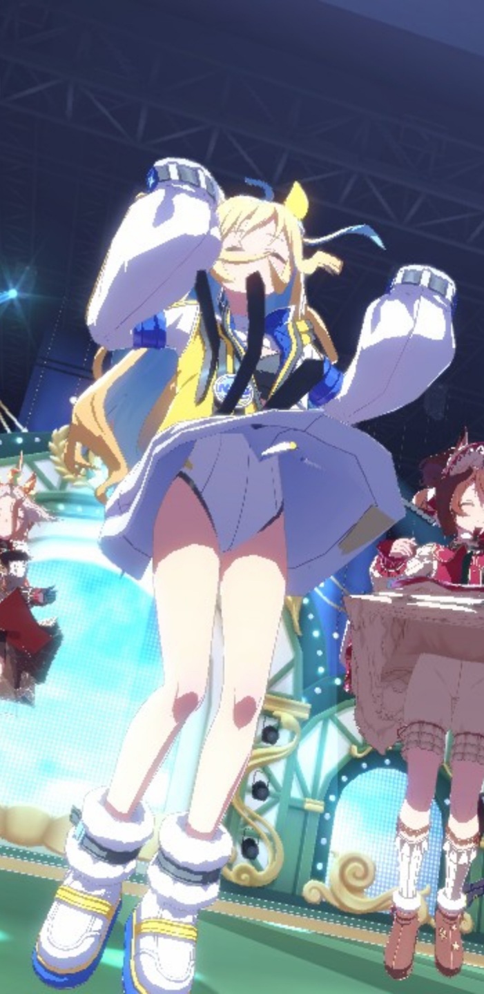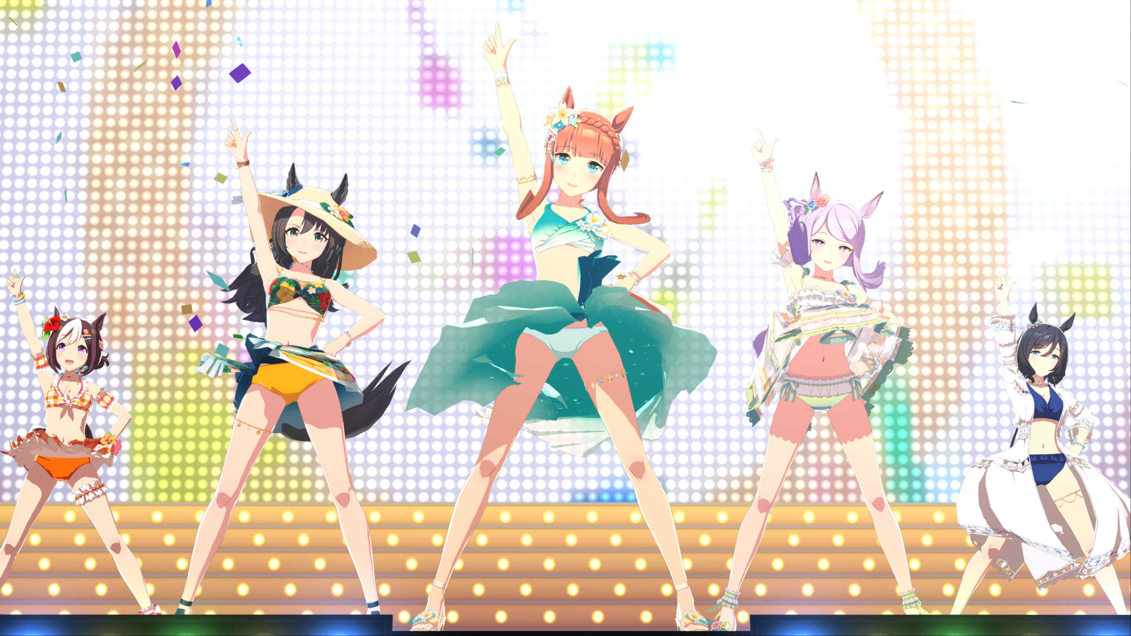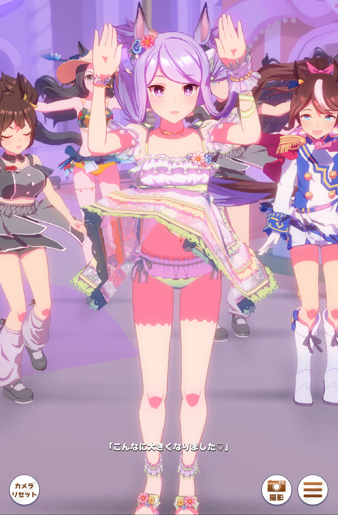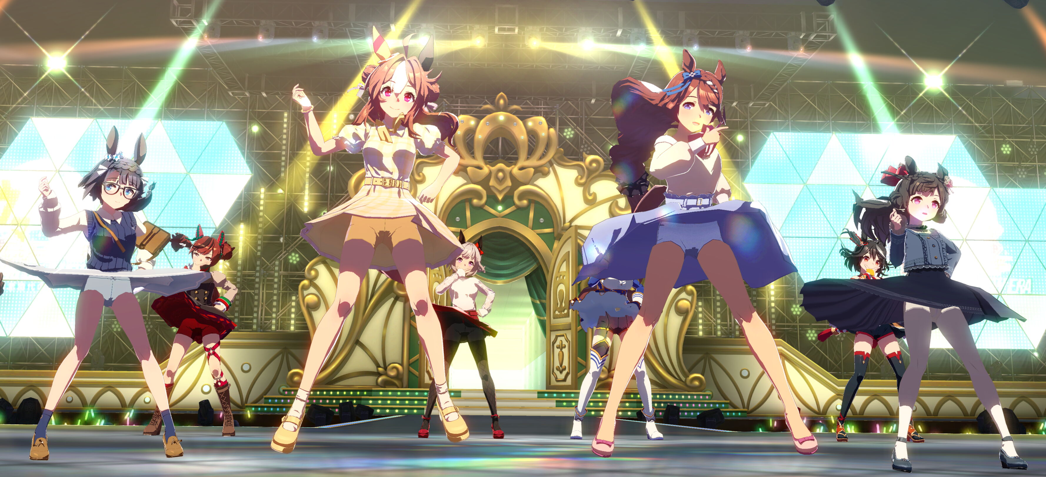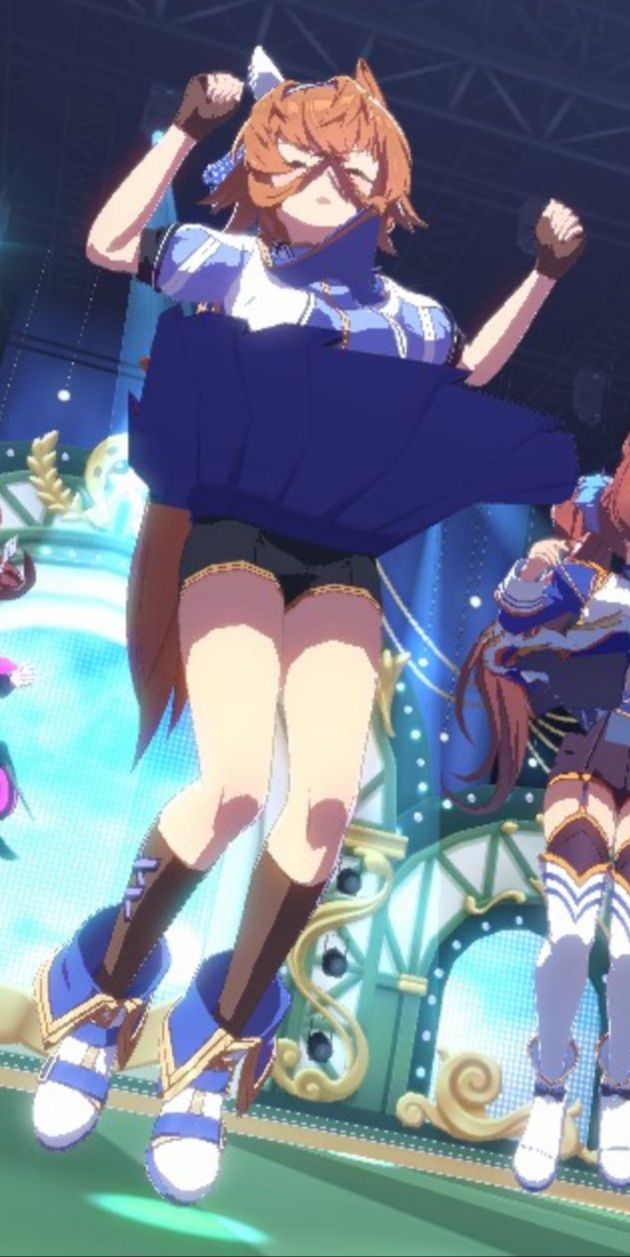 似たスカート丈の者同士、特にマイルとネイチャのスカートが色違いみたいに似たデザインなことに着目した秀逸な配置