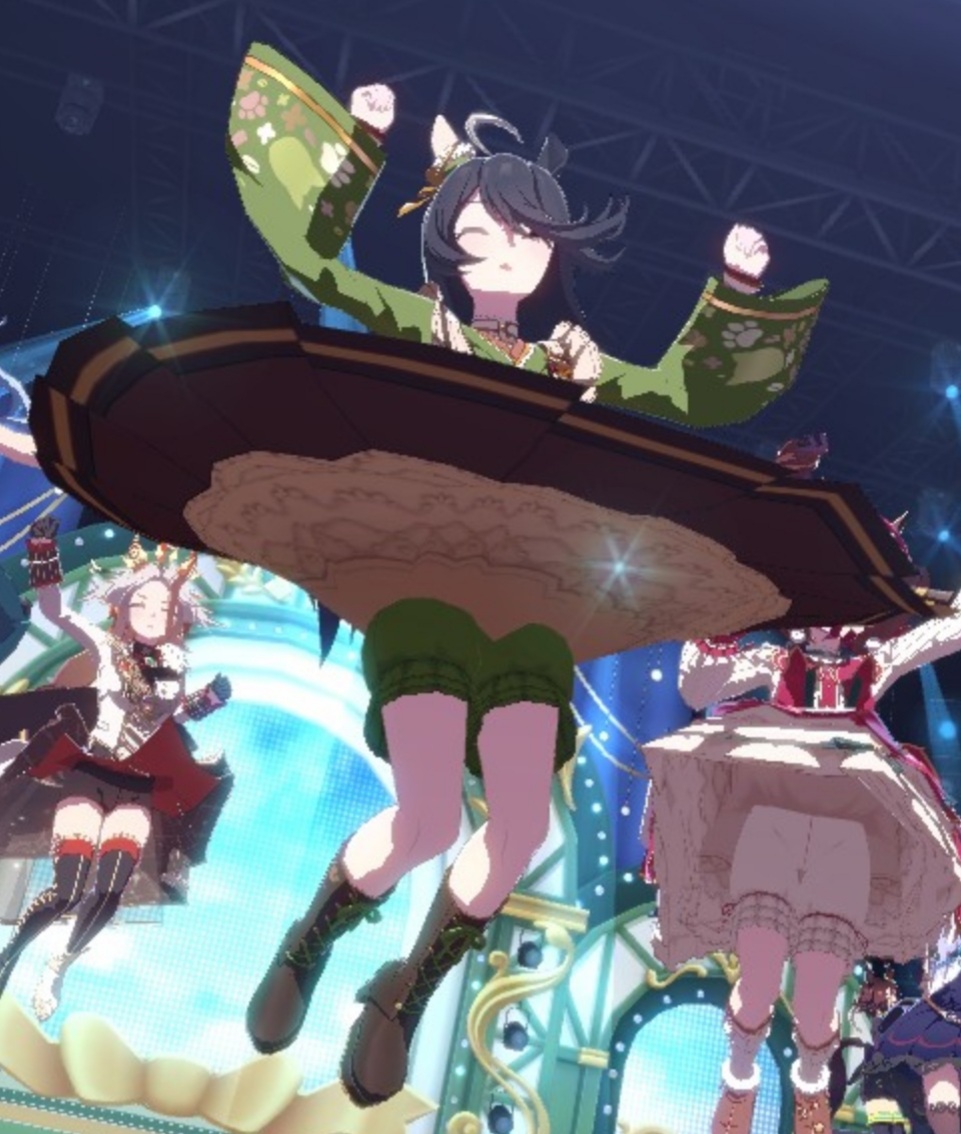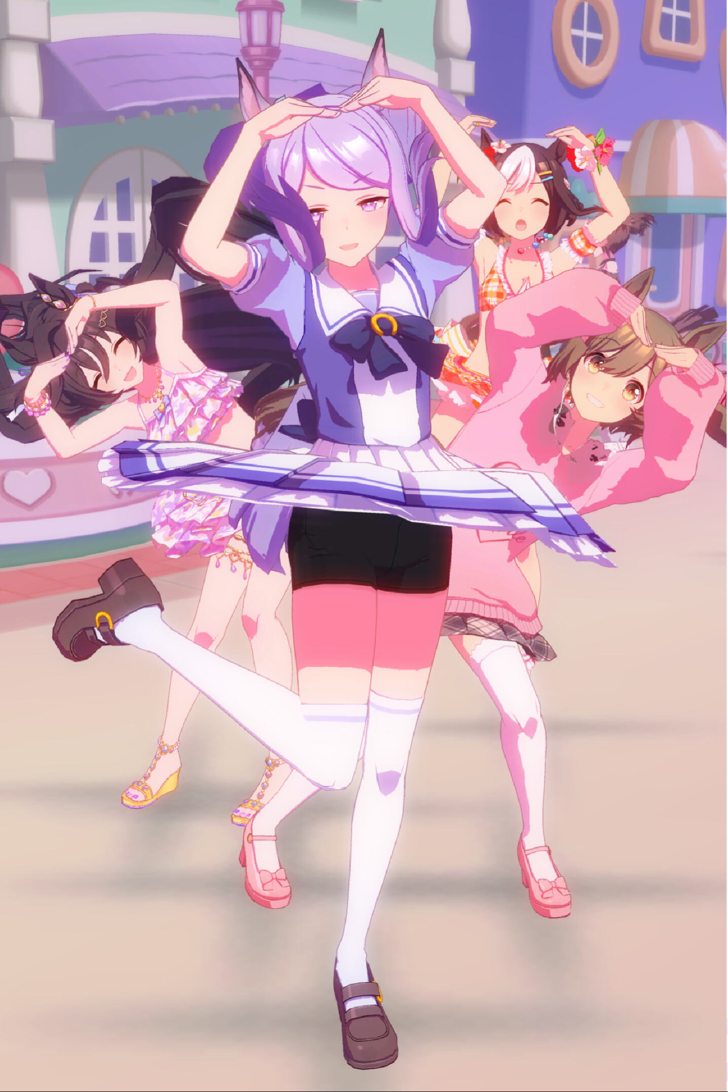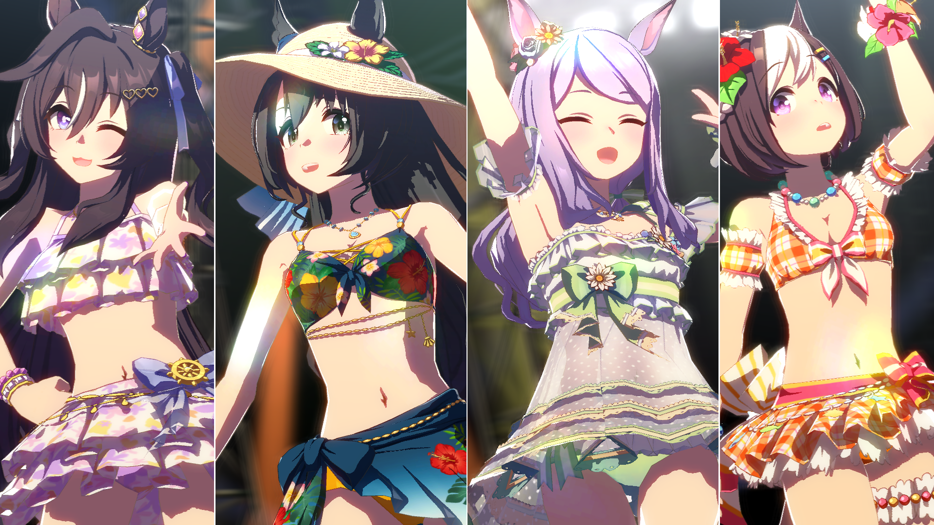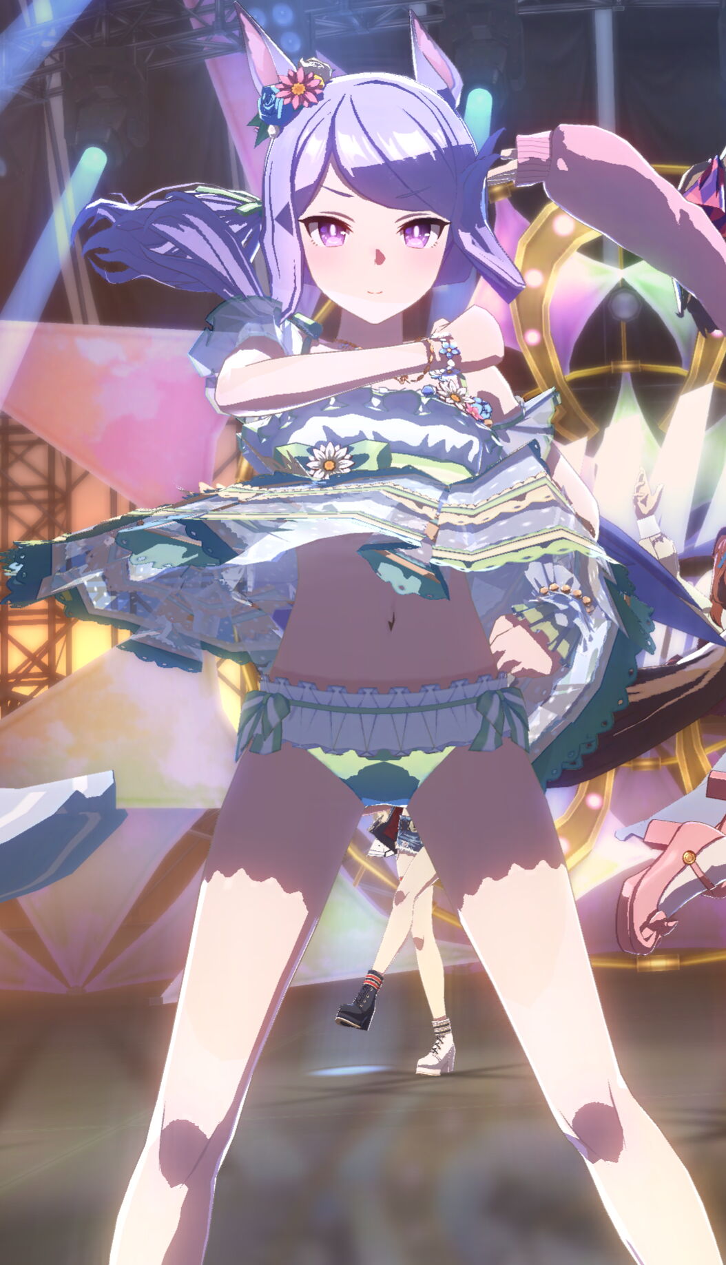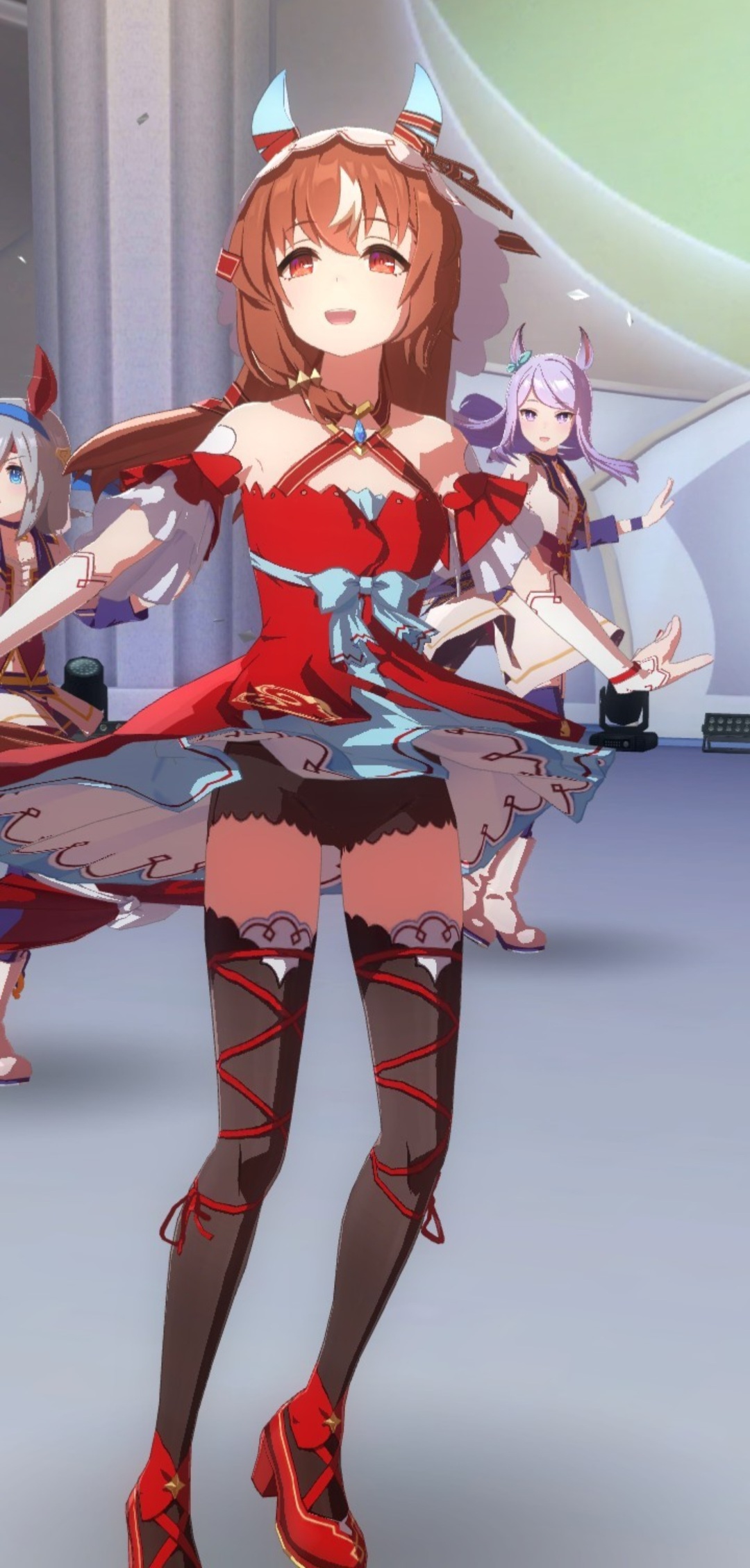 似たスカート丈の者同士、特にマイルとネイチャのスカートが色違いみたいに似たデザインなことに着目した秀逸な配置