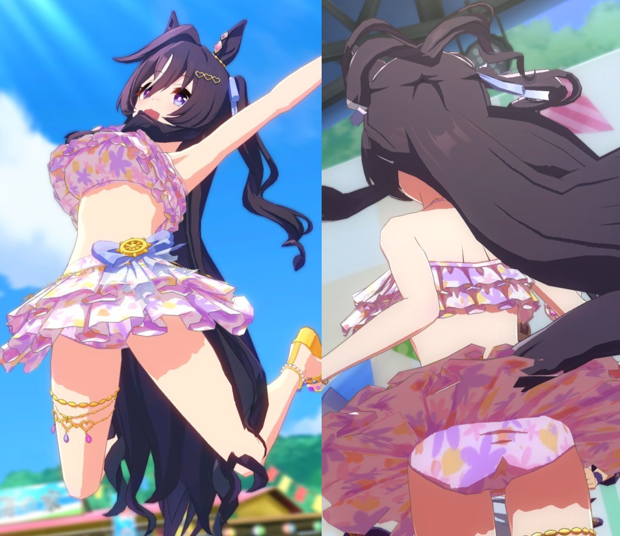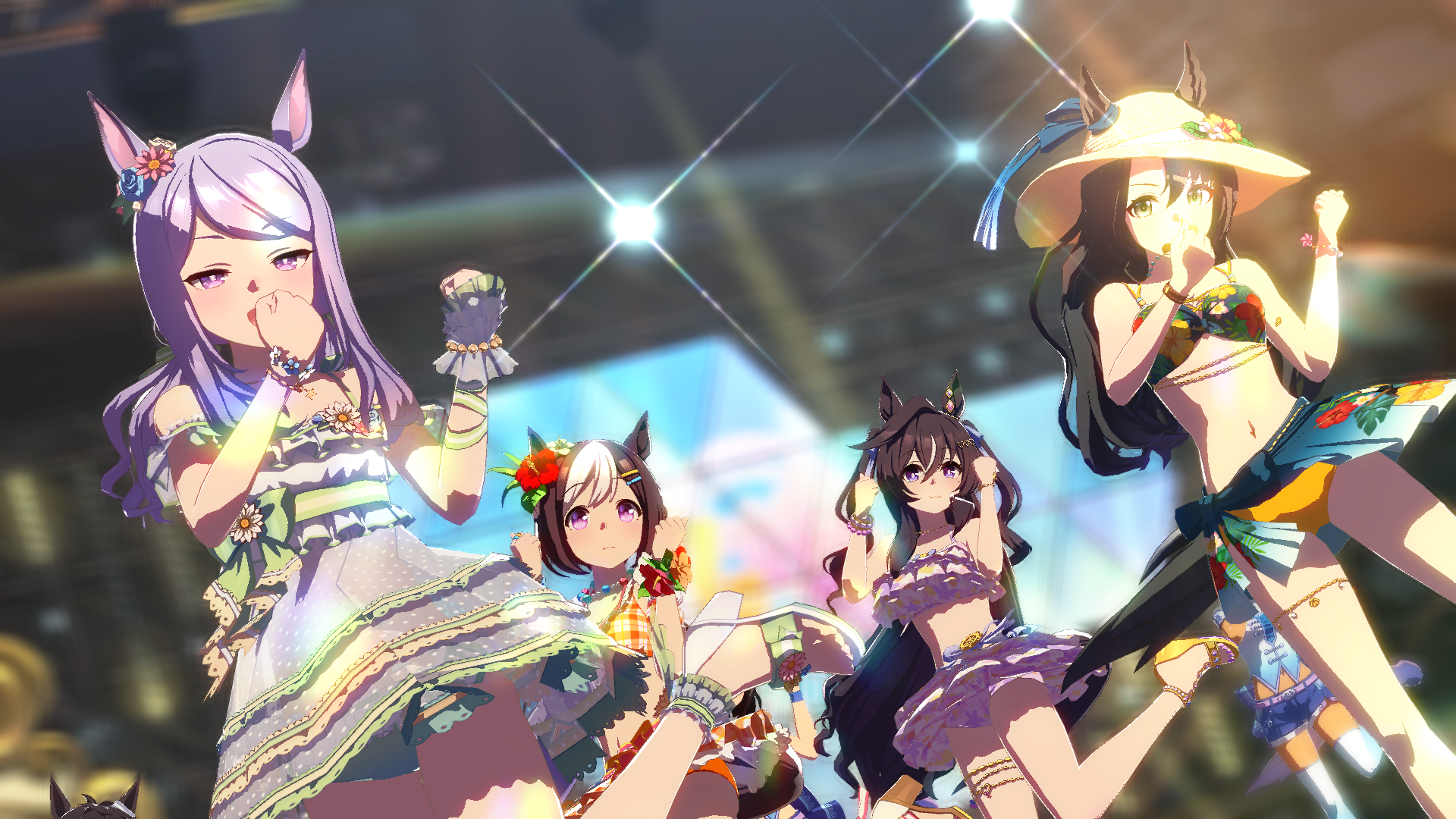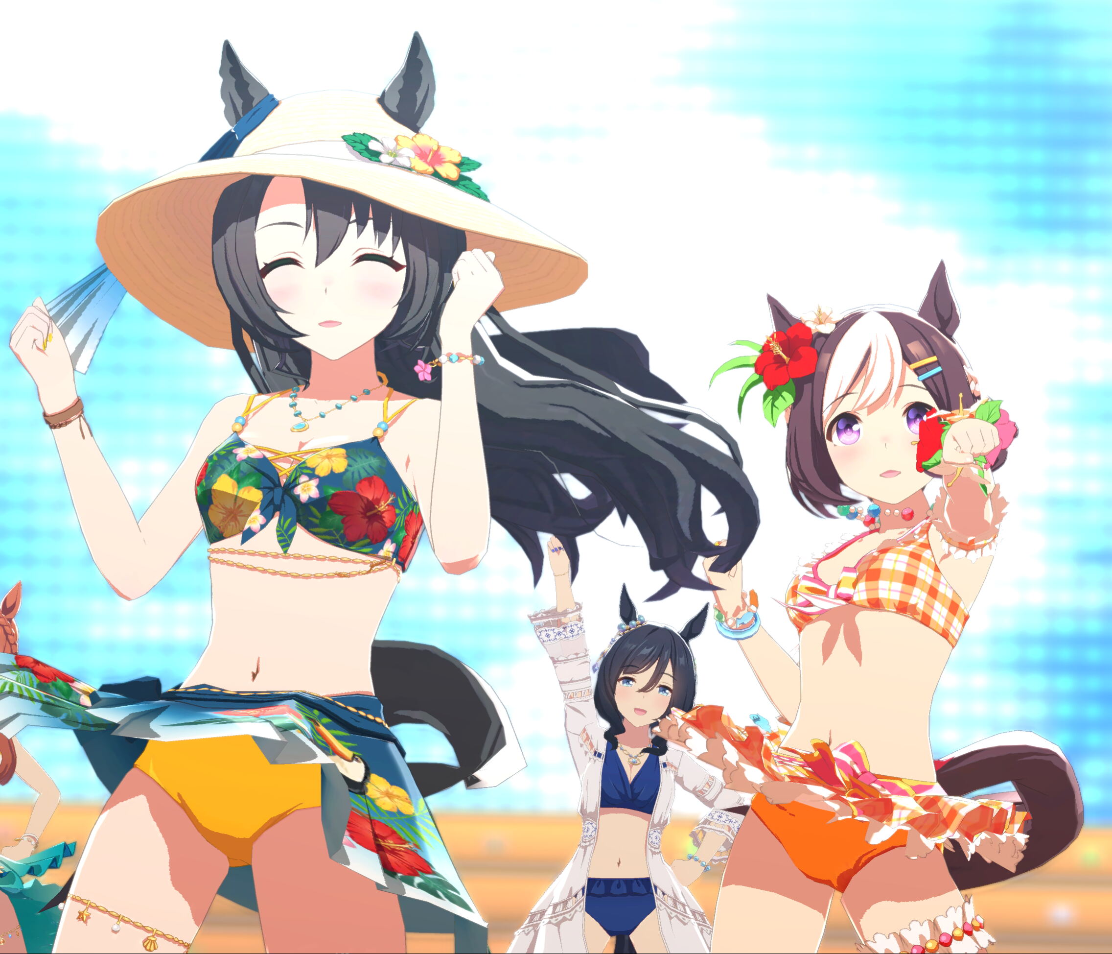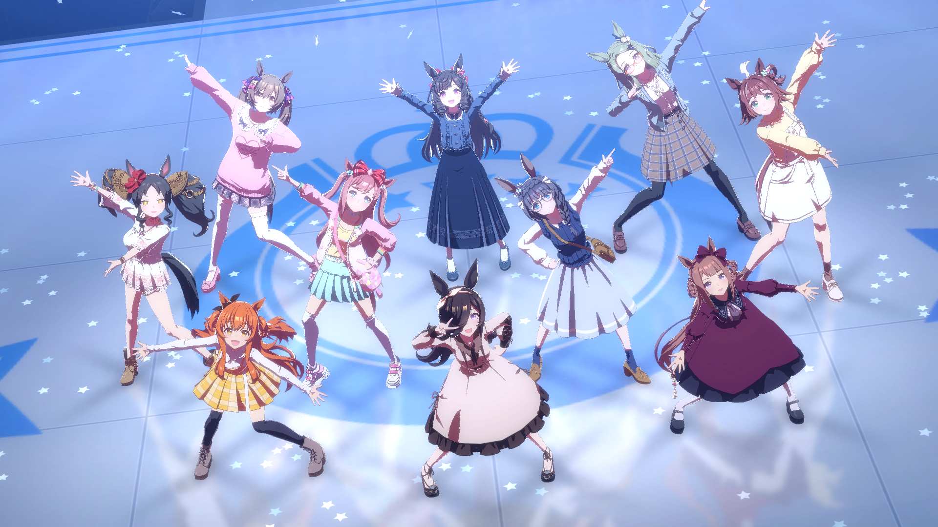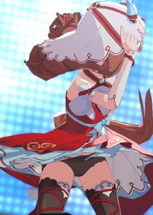 似たスカート丈の者同士、特にマイルとネイチャのスカートが色違いみたいに似たデザインなことに着目した秀逸な配置