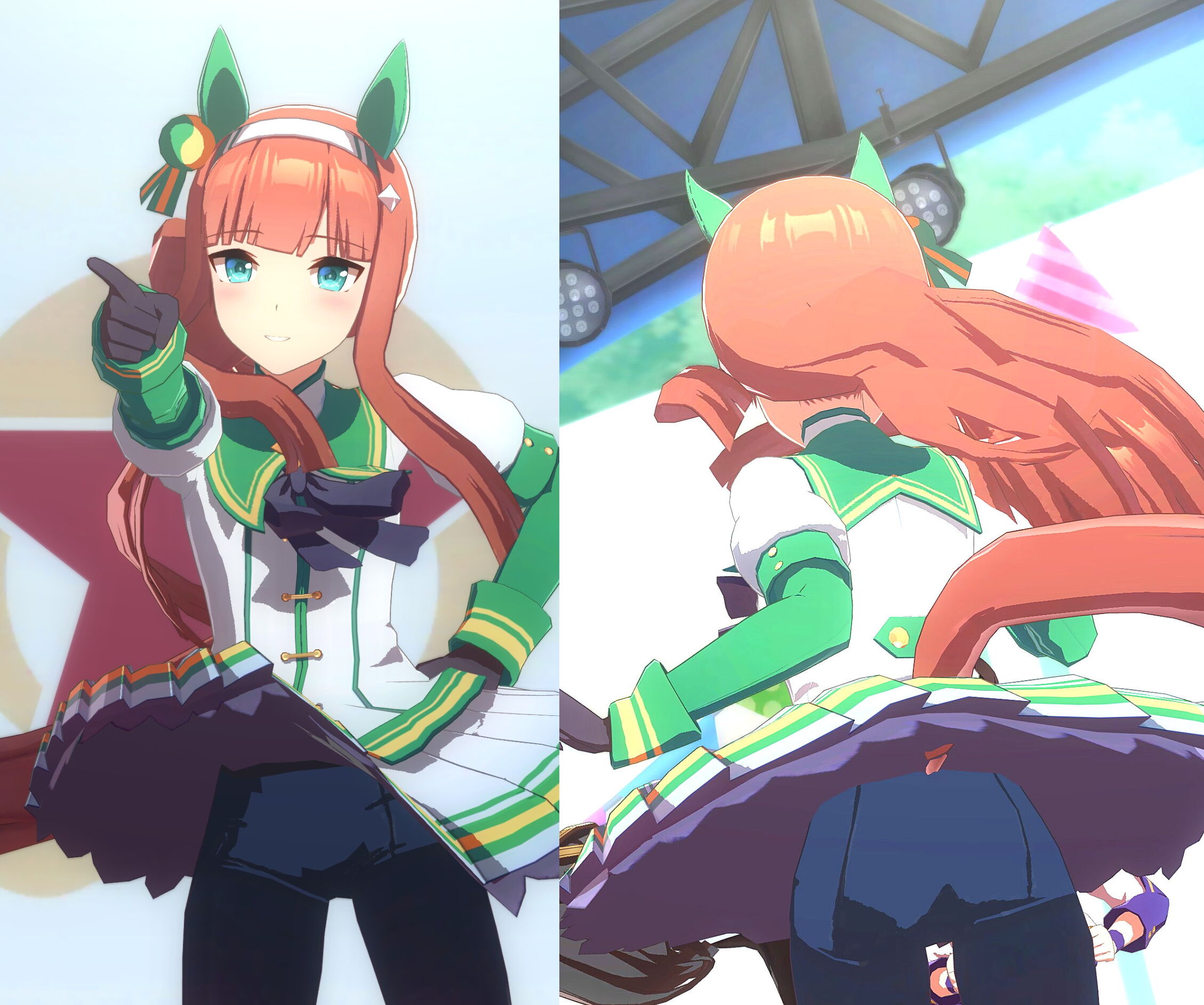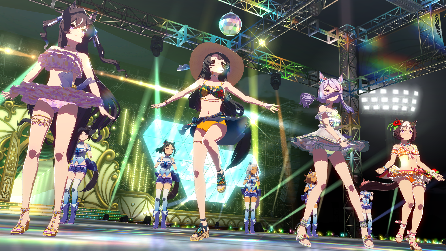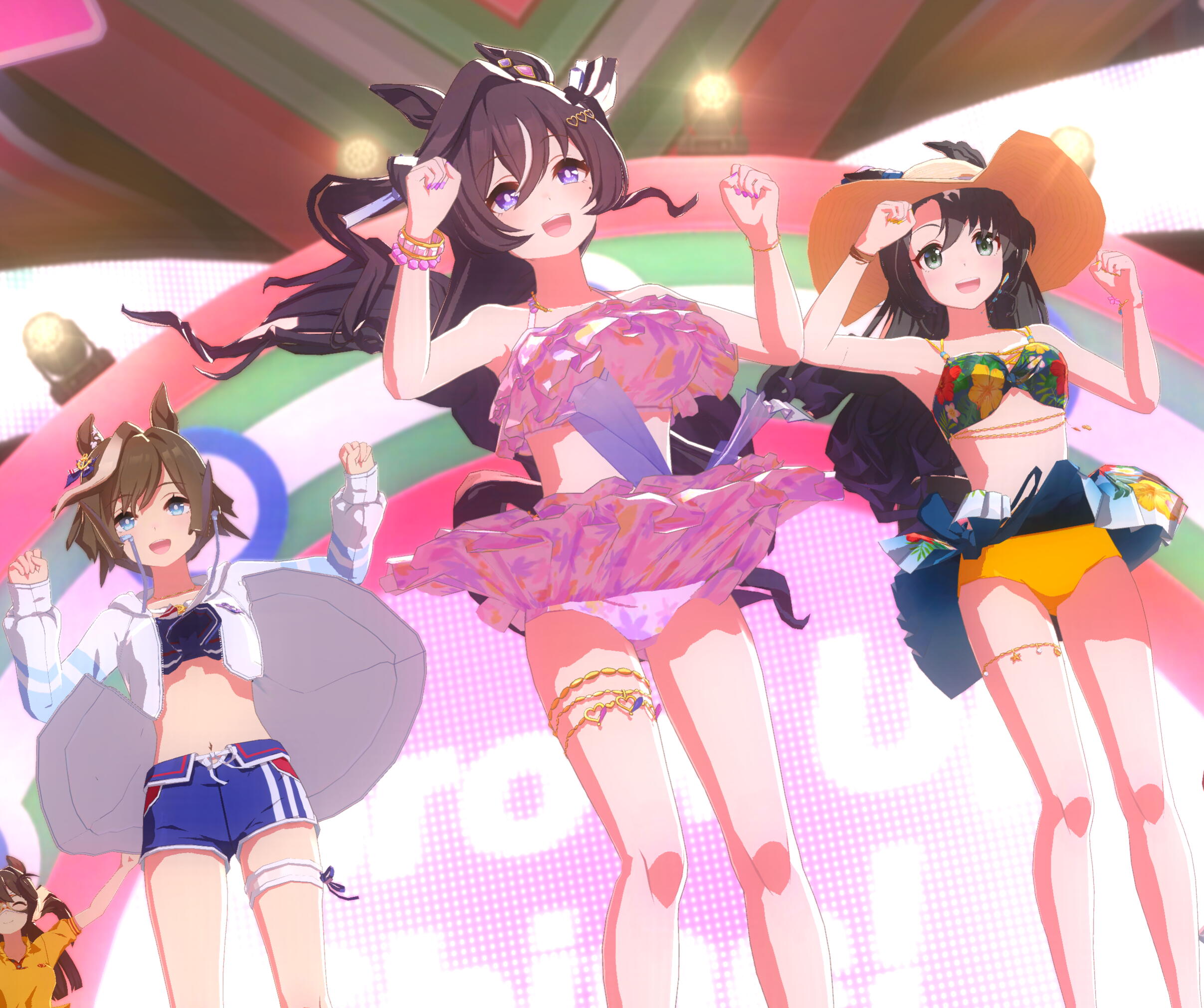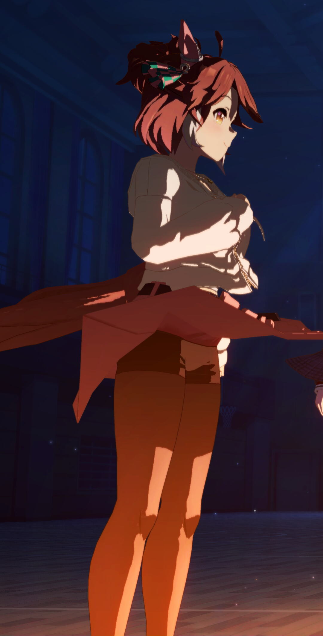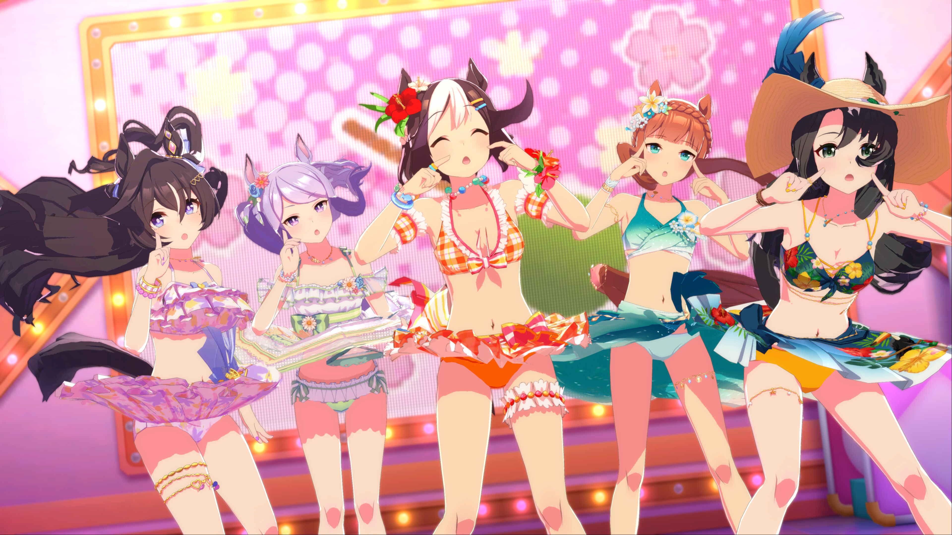 似たスカート丈の者同士、特にマイルとネイチャのスカートが色違いみたいに似たデザインなことに着目した秀逸な配置