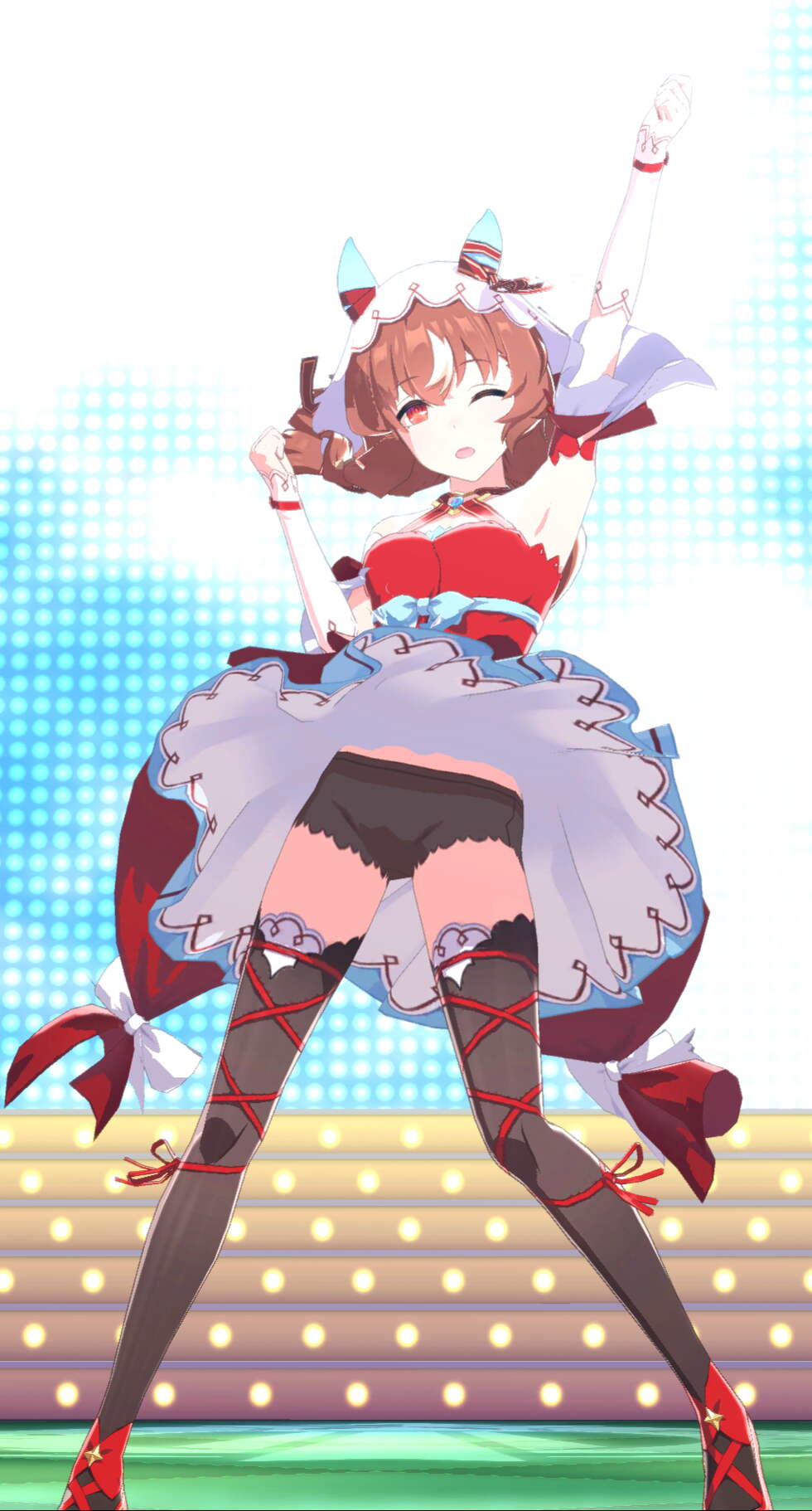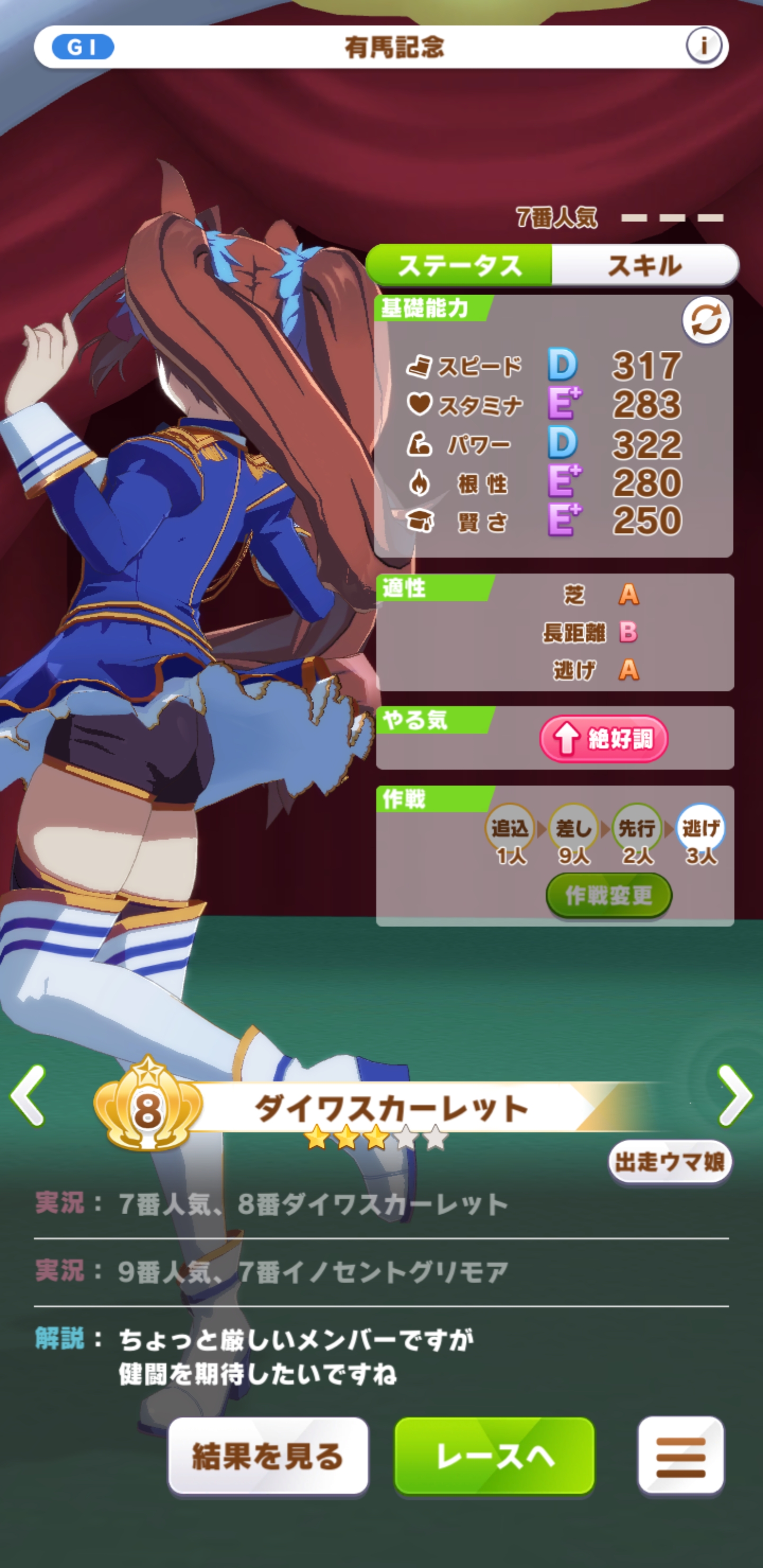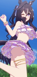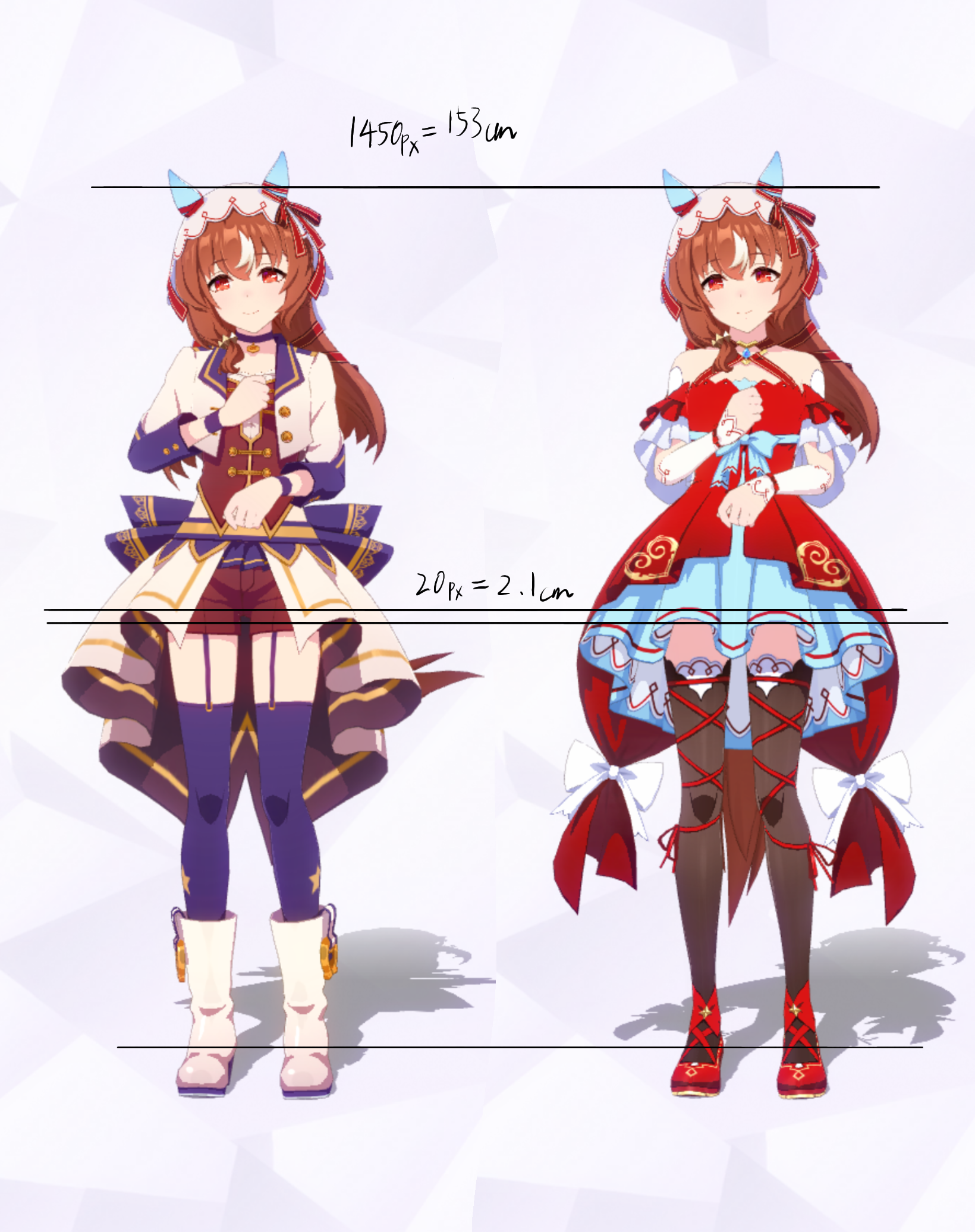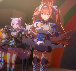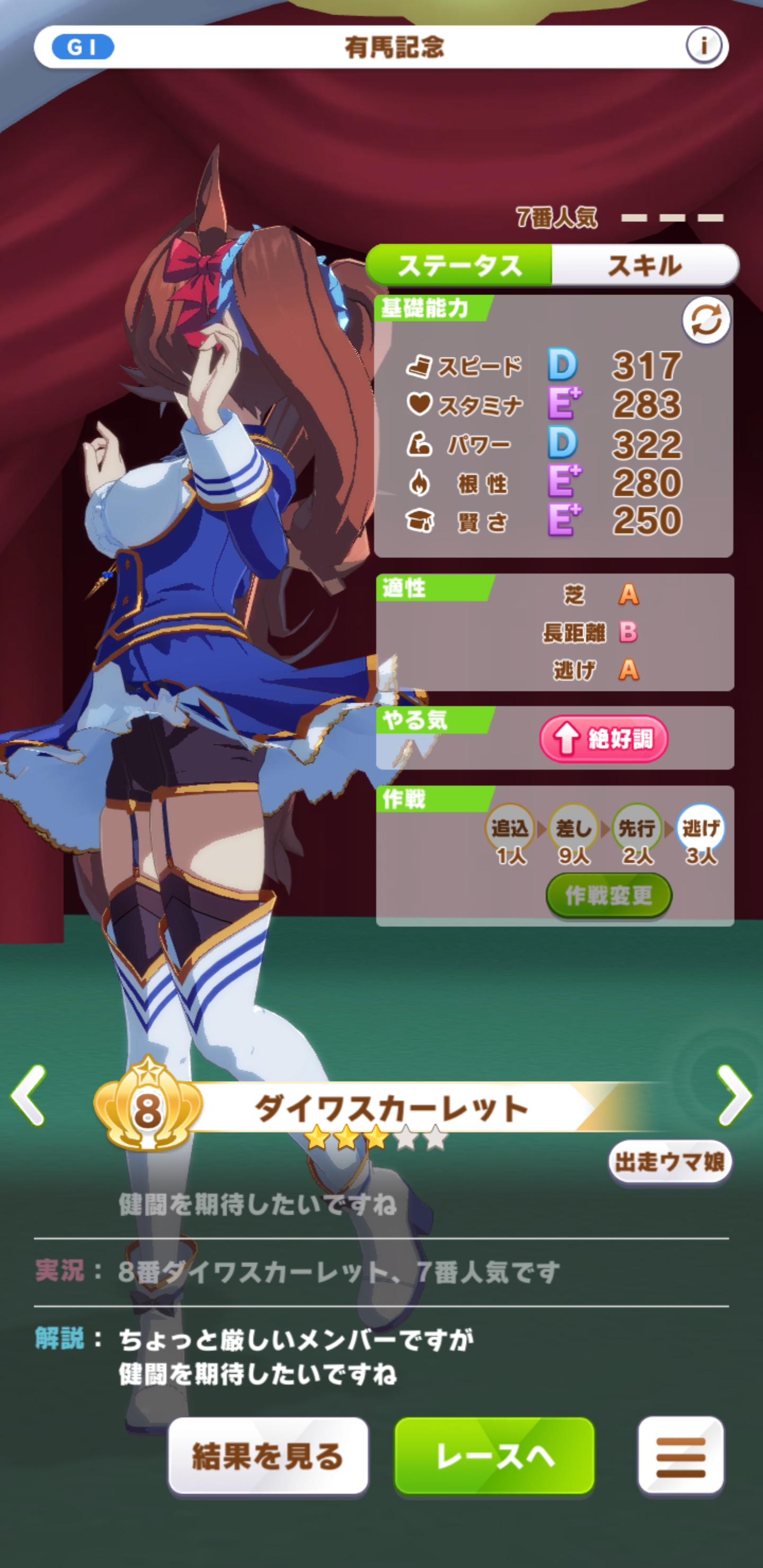 似たスカート丈の者同士、特にマイルとネイチャのスカートが色違いみたいに似たデザインなことに着目した秀逸な配置