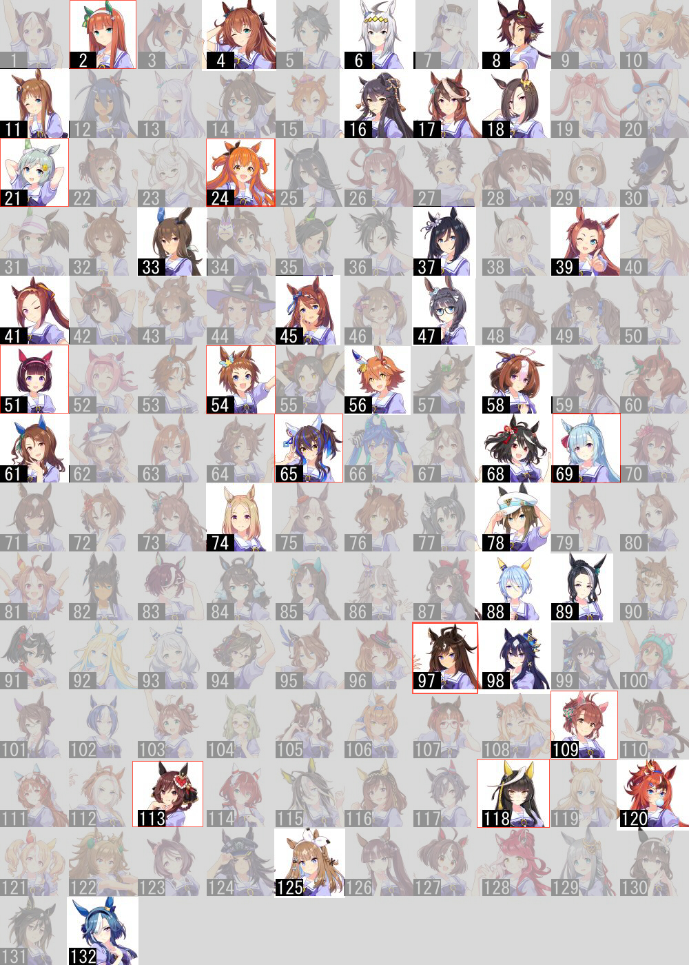 持ち球は以上です。今後はヴィルシーナ、ラモーヌ、クリークに競泳水着を着せる予定です。これにて失礼いたします。